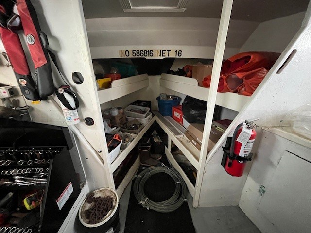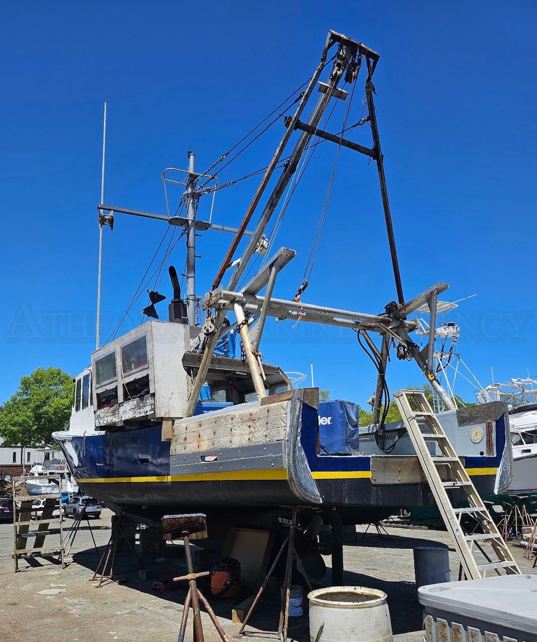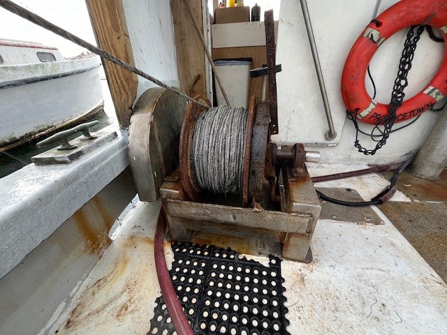 2 custom trawl winches 180 fathom of 7/16 compact wire capacity Aluminum A-frame Aluminum gallows Aluminum net reel with Charlynn 4000 motor chain drive Rotzler H-5 boom winch 14' lobster hauler Aluminum mast Aluminum boom Stainless steel davit (x2) #1.25 steel "NETS" trawl doors Nets |