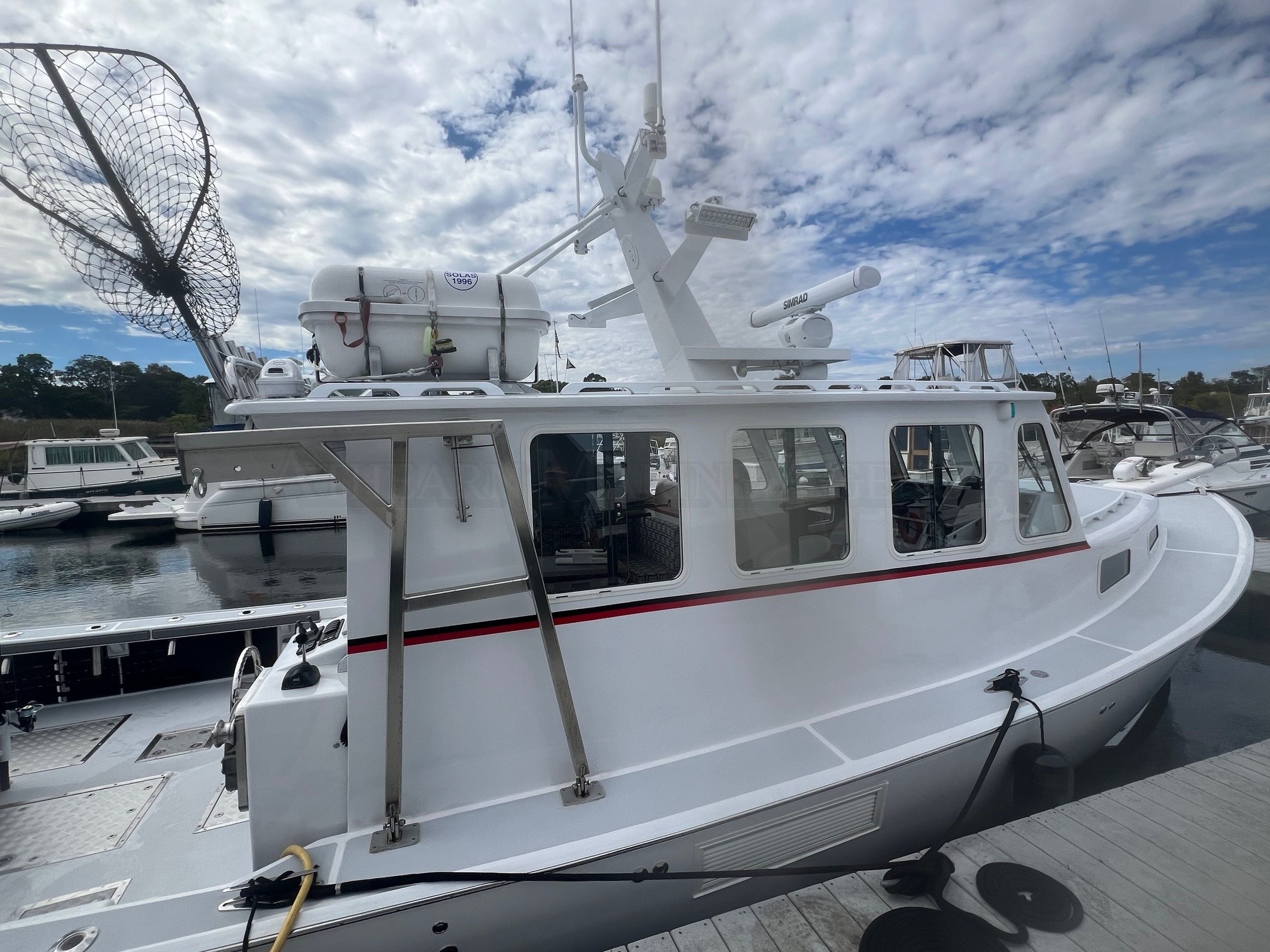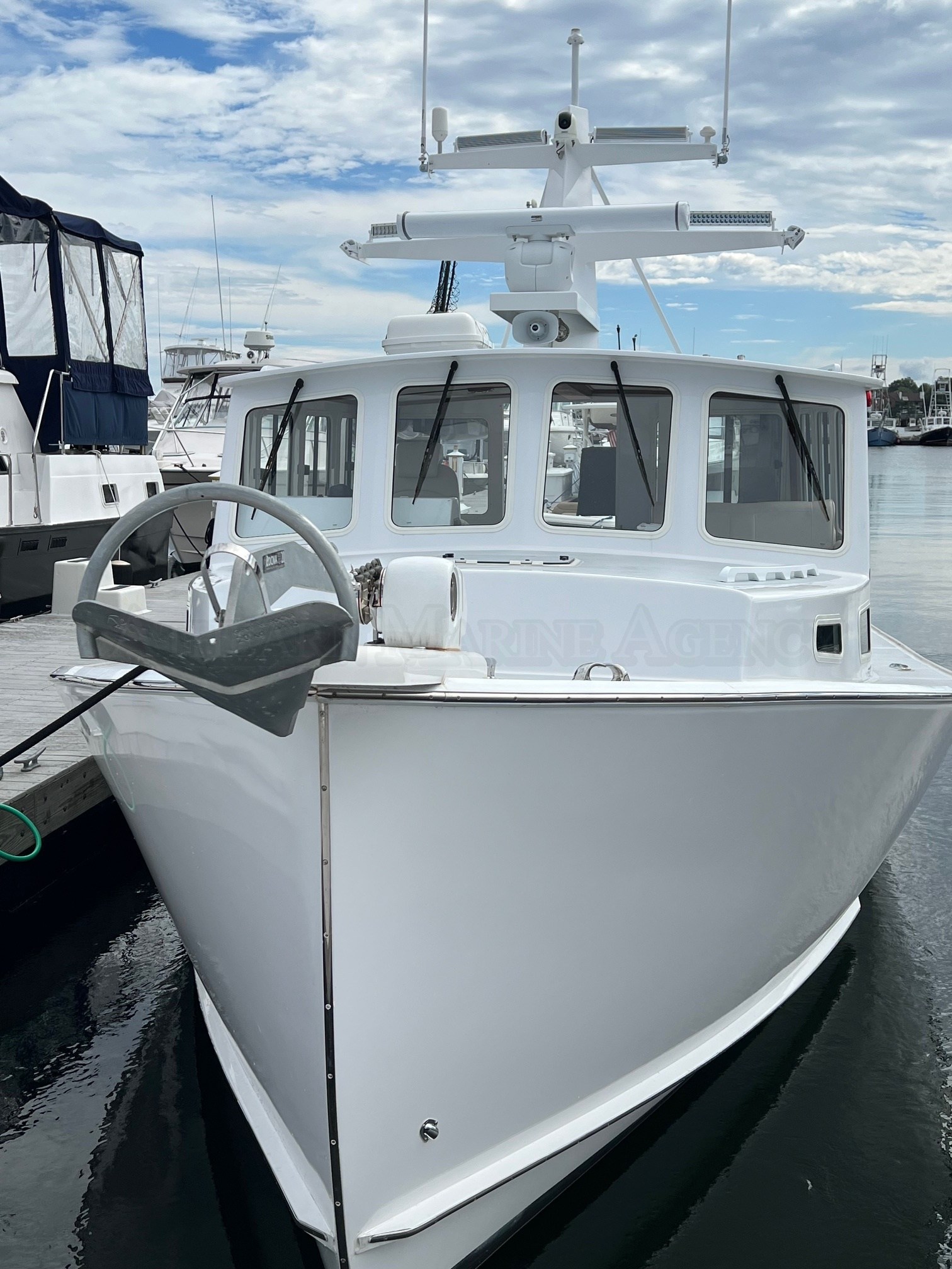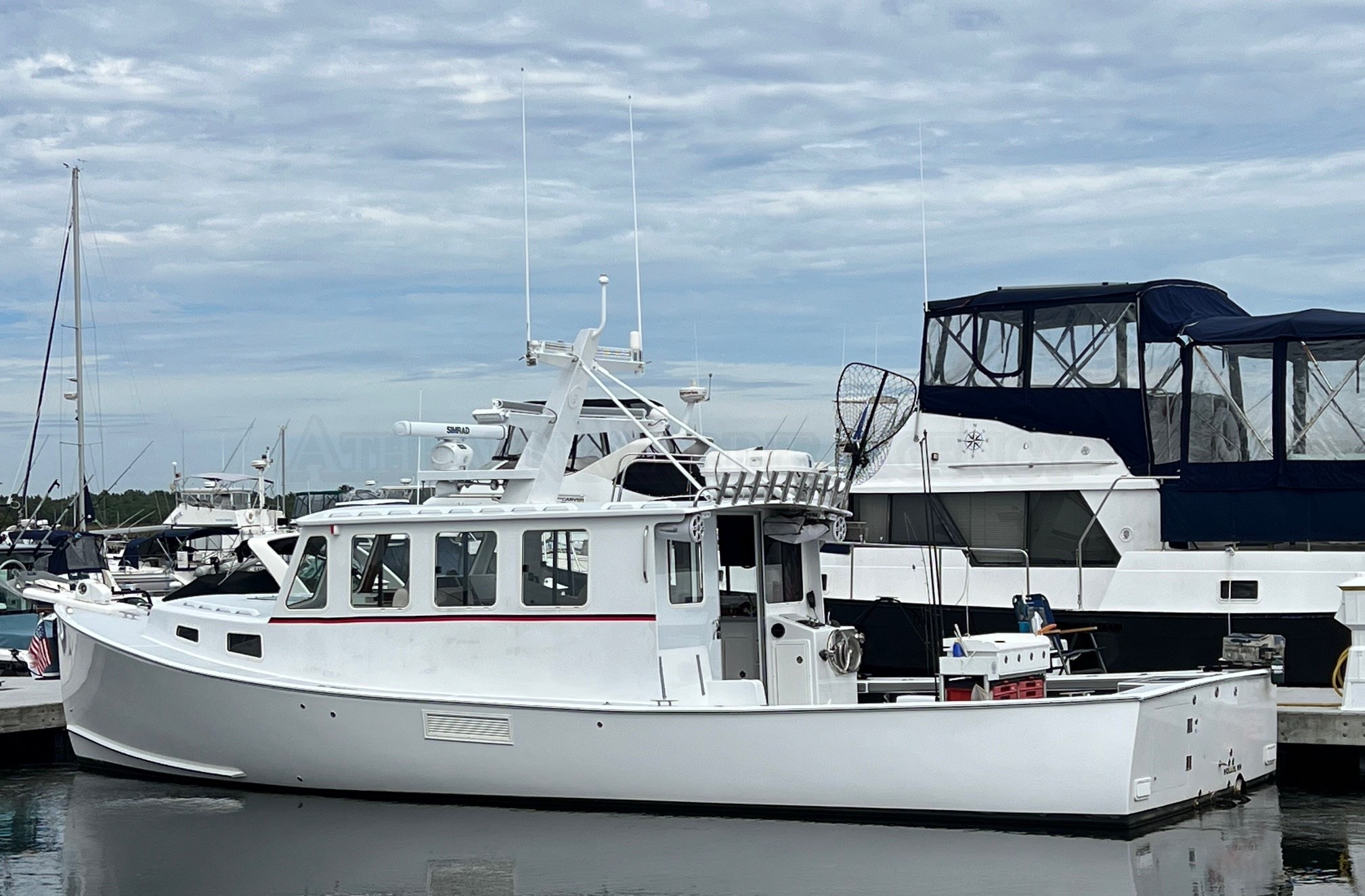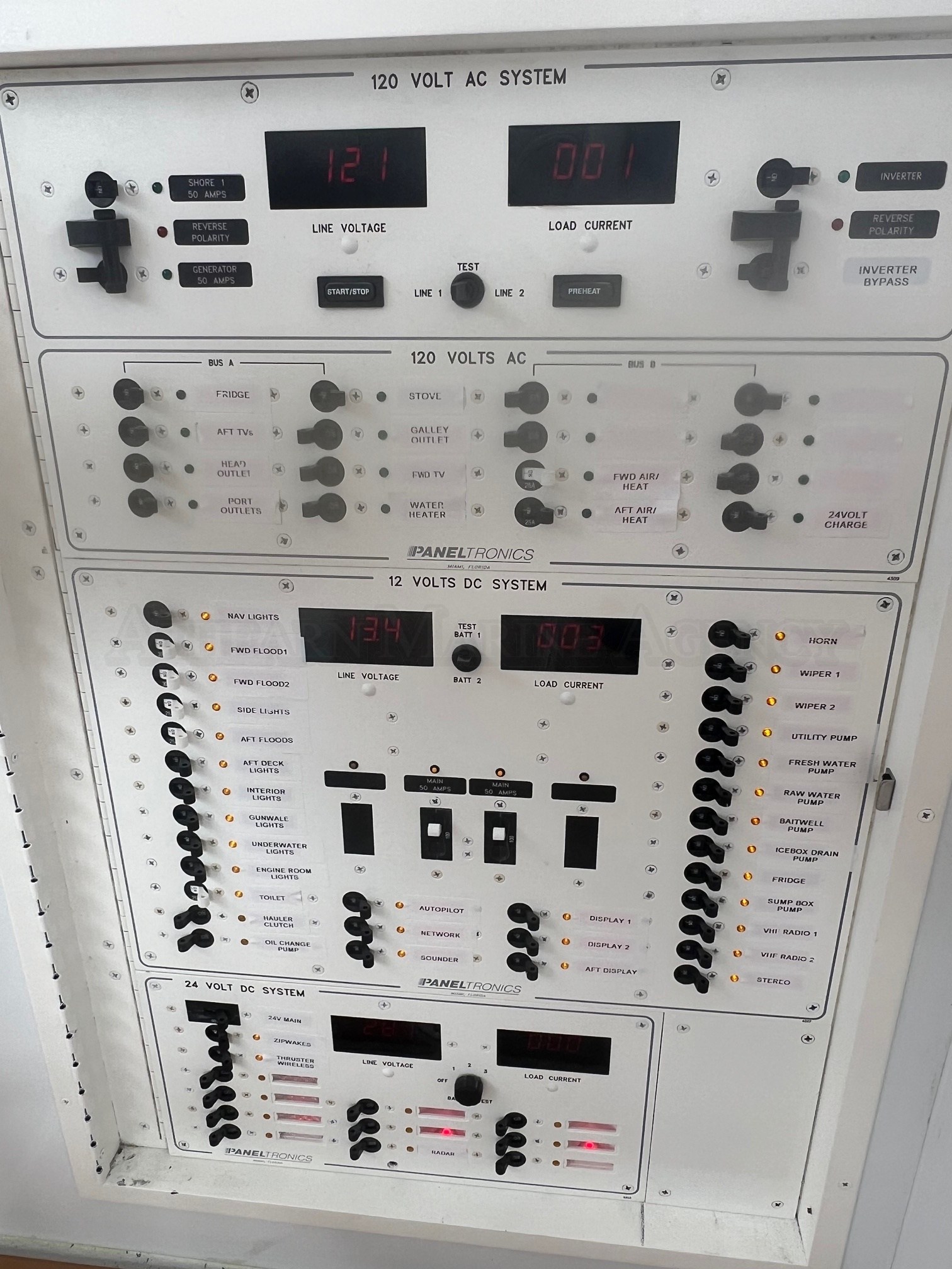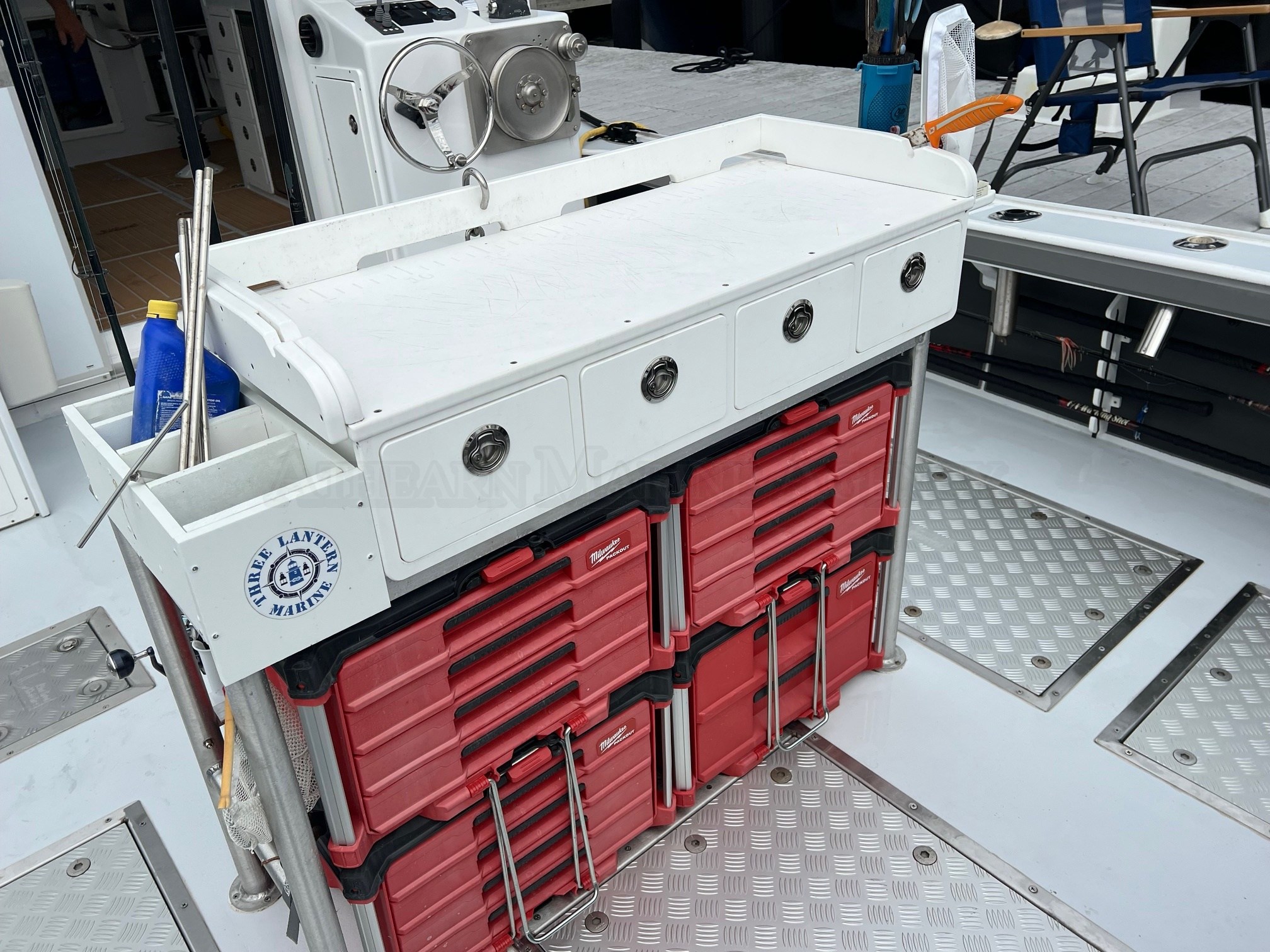 12" lobster hauler - trolling valve w/ electric controls Bow thruster Stern thruster Second steering station Live well - 50 gallons Anchor windlass Ice chest LED radar and light arch Rod Holders: Arch - 10 rod holders, 9 Tuna Swivel holders and 8 Regular rod holders (6) spot lights Anchor light (4) 6 volt batteries (2) 24 volt batteries 12 volt inverter 24 volt inverter (4) windshield wipers Multiple storage compartments under deck 500 lb. under deck insulated fish hold Filleting table |