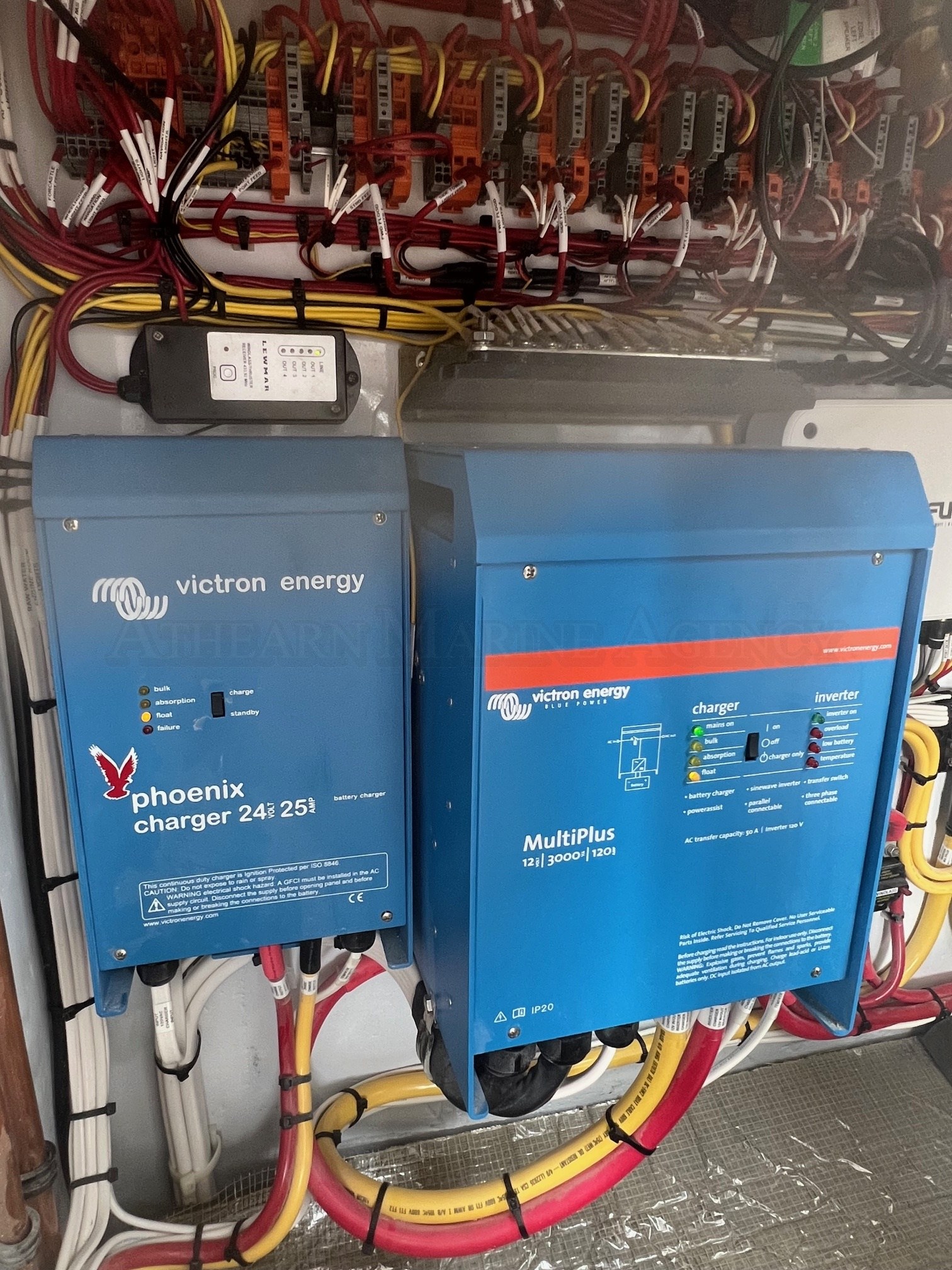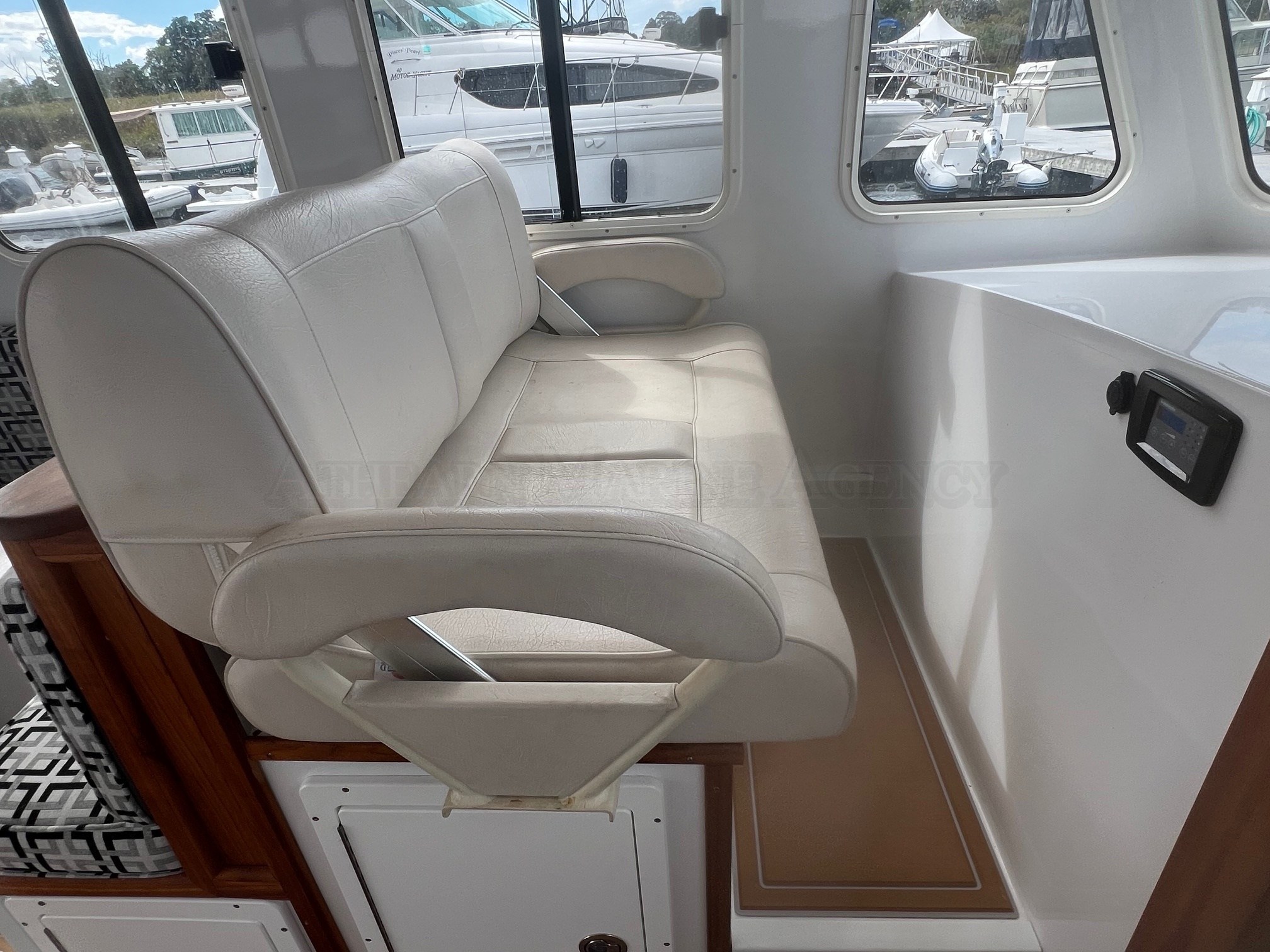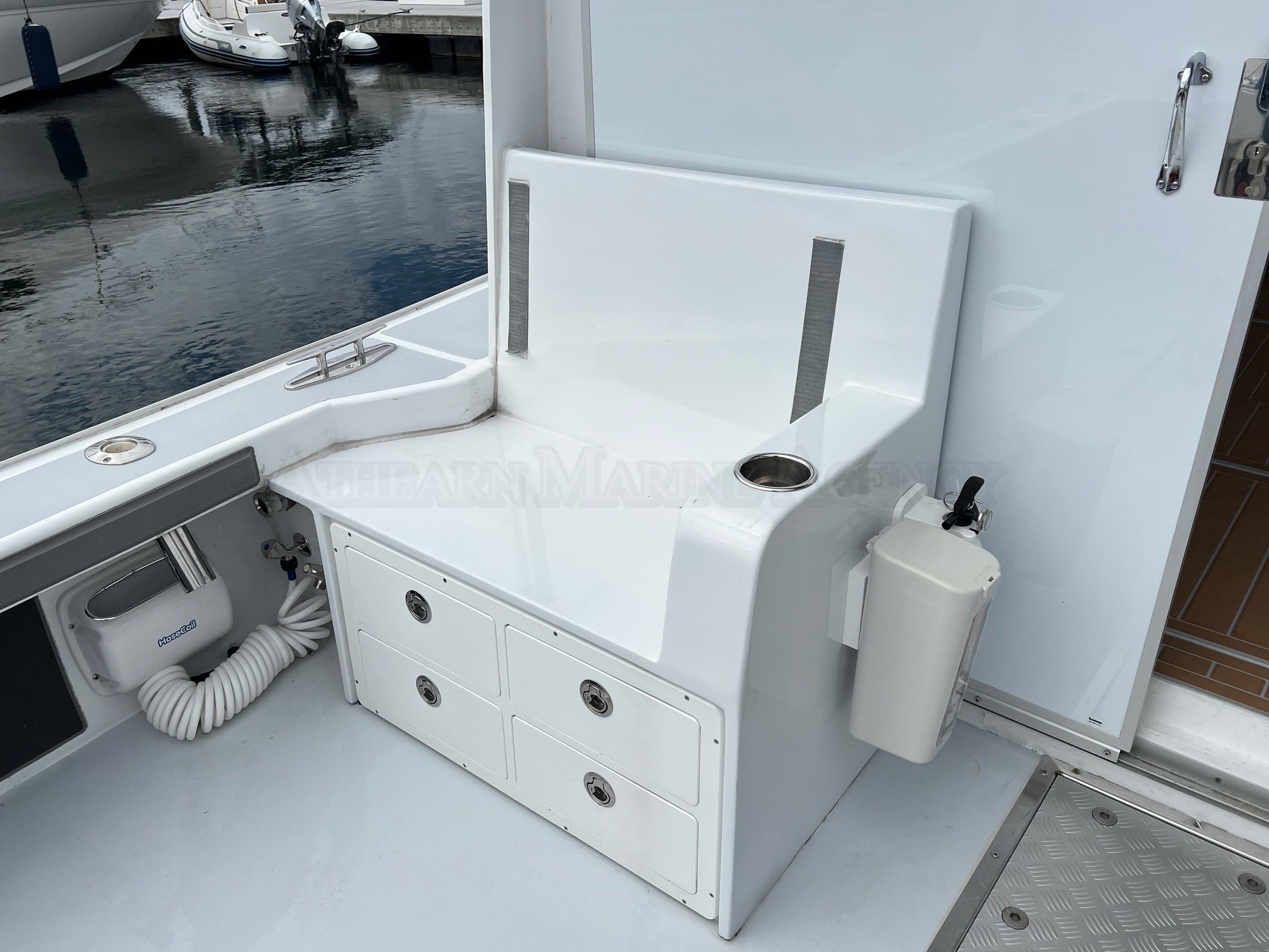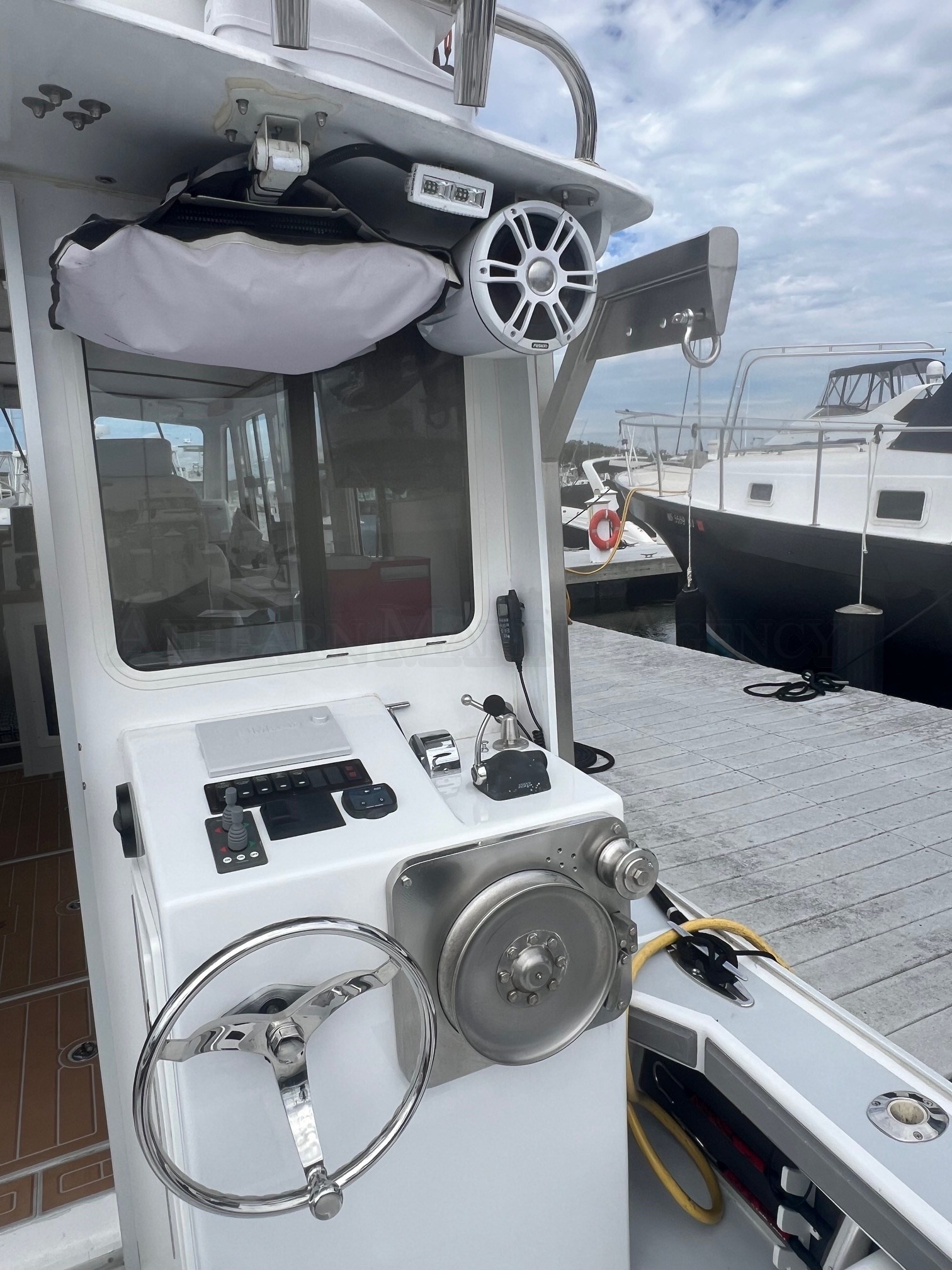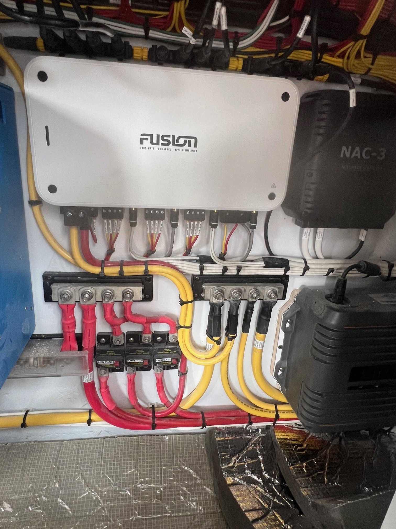 Radar: Simrad VHF: Icom M510, Icom M424G DSC VHF: (6) speakers AutoPilot: Simrad VMS (Black Box): Iridium satellite phone (antenna-roof mounted) VHF rear: Icom mic. station w/ speaker 8-spot lights (night vision) Simrad HALO - 4KW open array (2) Simrad NSS2 - 16" & on deck 9" (3) external flat screen (2) Fusion stations Simrad info display - 4" Structure scan |