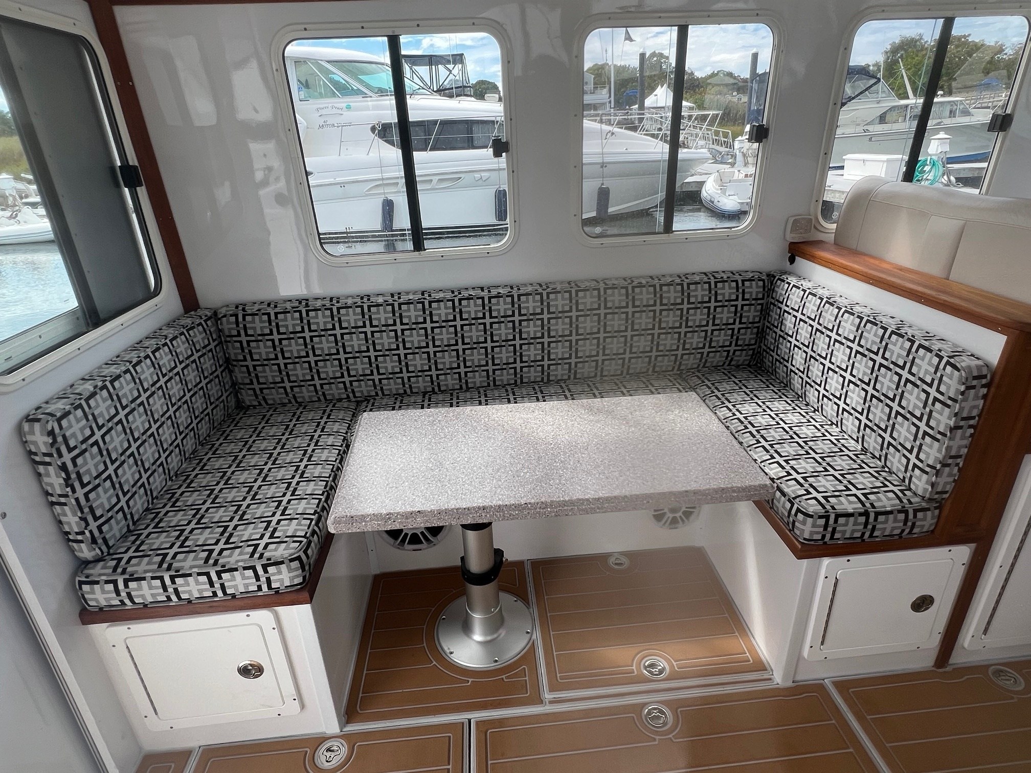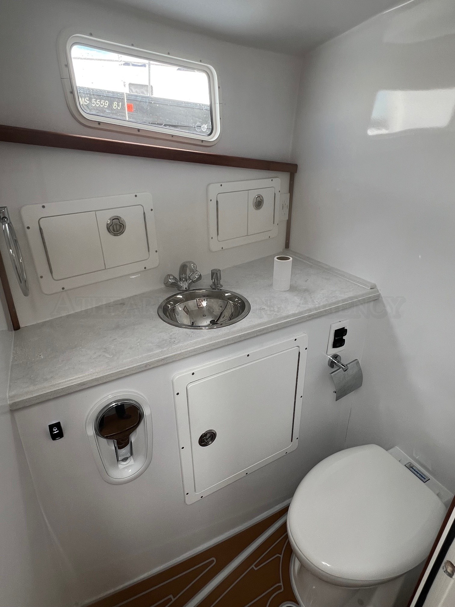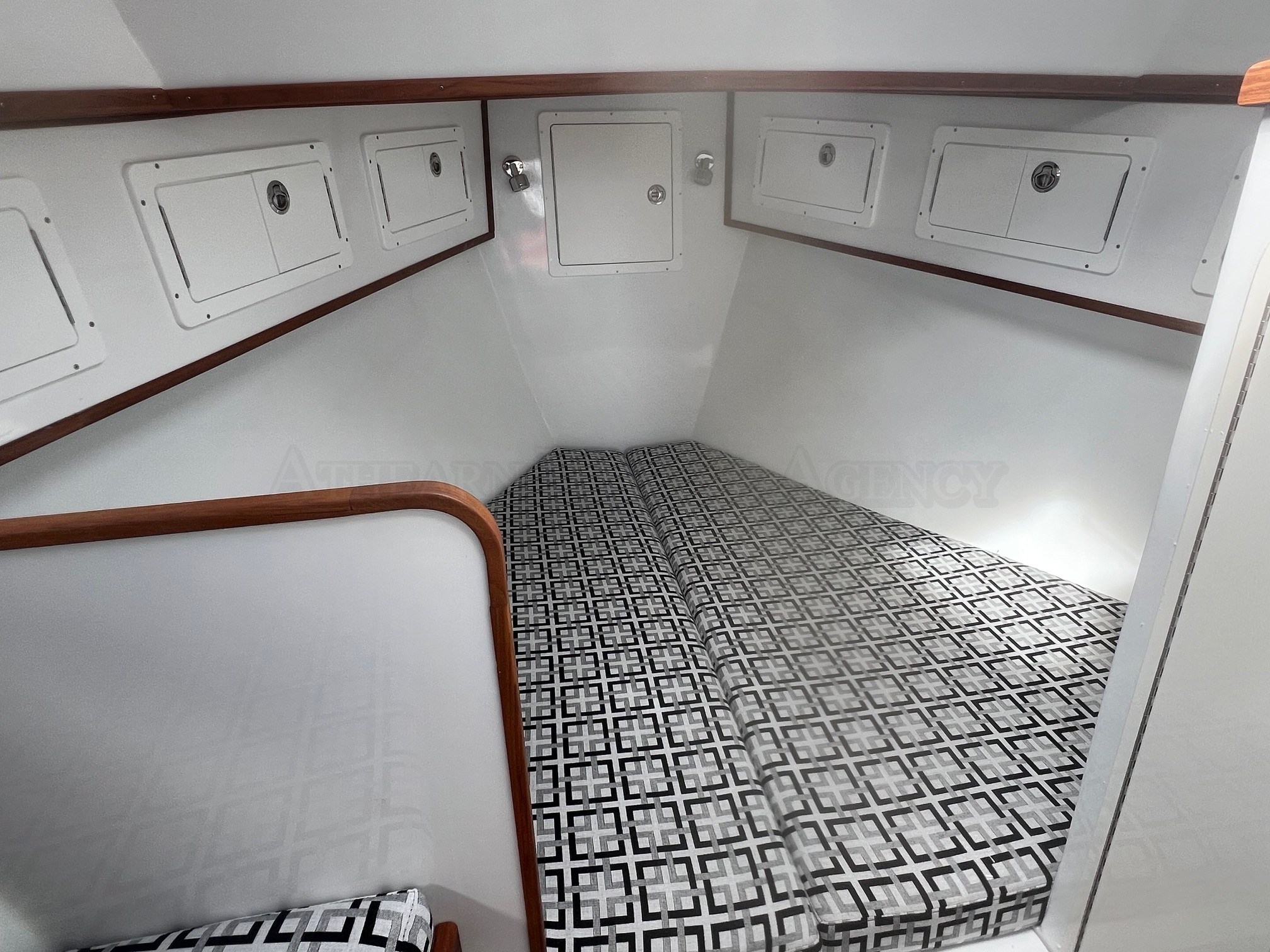 V-berth forward Salon (table drops to single berth) Single berth port down forward Stainless steel single basin sink Isotherm refrigerator/freezer Raritan electric head/shower Kenyon - dual electric cooktop - 2 burner Webesto AC / heat - 16KW (salon) Webesto AC / heat - 12 KW (forward) Dual burner electric cooktop 20 gallons of black water 20 gallons of freshwater intake 84 Gallon fresh water tank Hot water tank - 11 gallon |
