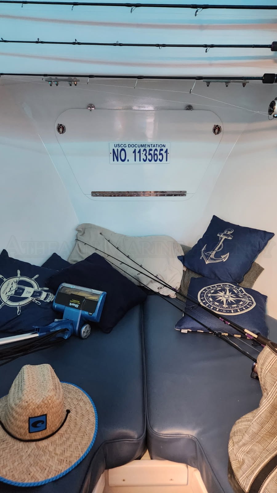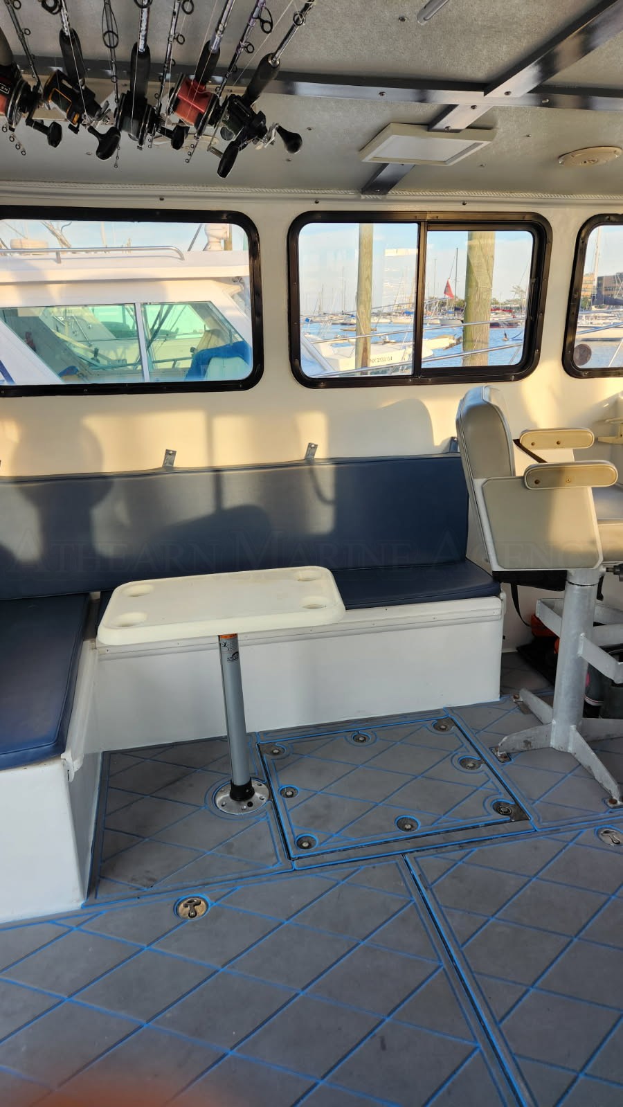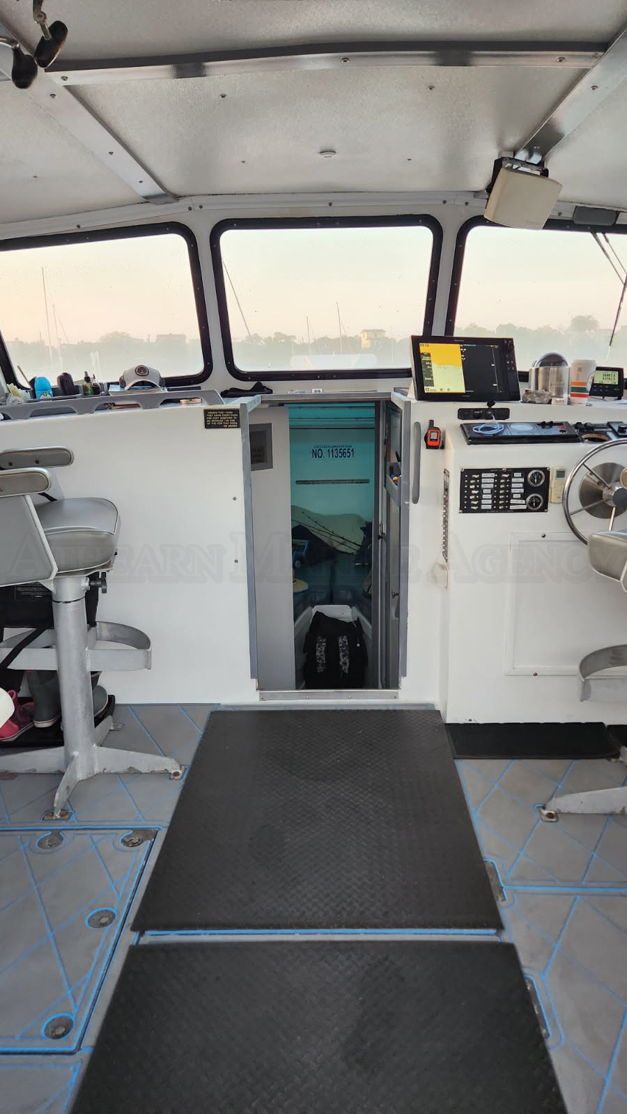 10" electrodyne lobster hauler Vetus bow thruster (14) rod holders (2) tackle centers Outside station Pulpit with dual anchor system LED lights Consta-volt battery charger Shore power hook-up Tuna door Wynn windows |