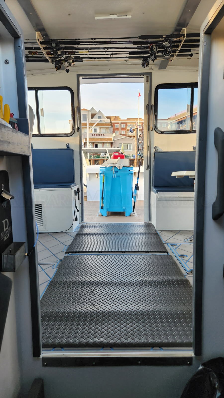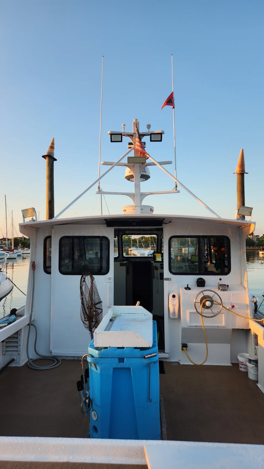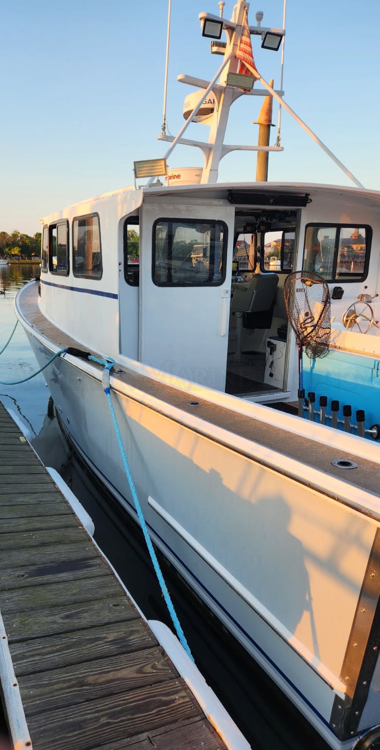 10" electrodyne lobster hauler Vetus bow thruster (14) rod holders (2) tackle centers Outside station Pulpit with dual anchor system LED lights Consta-volt battery charger Shore power hook-up Tuna door Wynn windows |