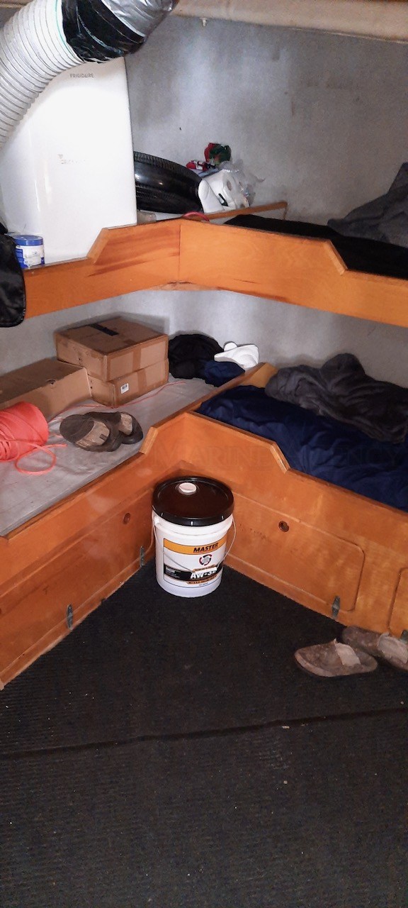 V-berths (forward) Head (forward) Central AC galley (main deck) Refrigerator Stove Microwave |