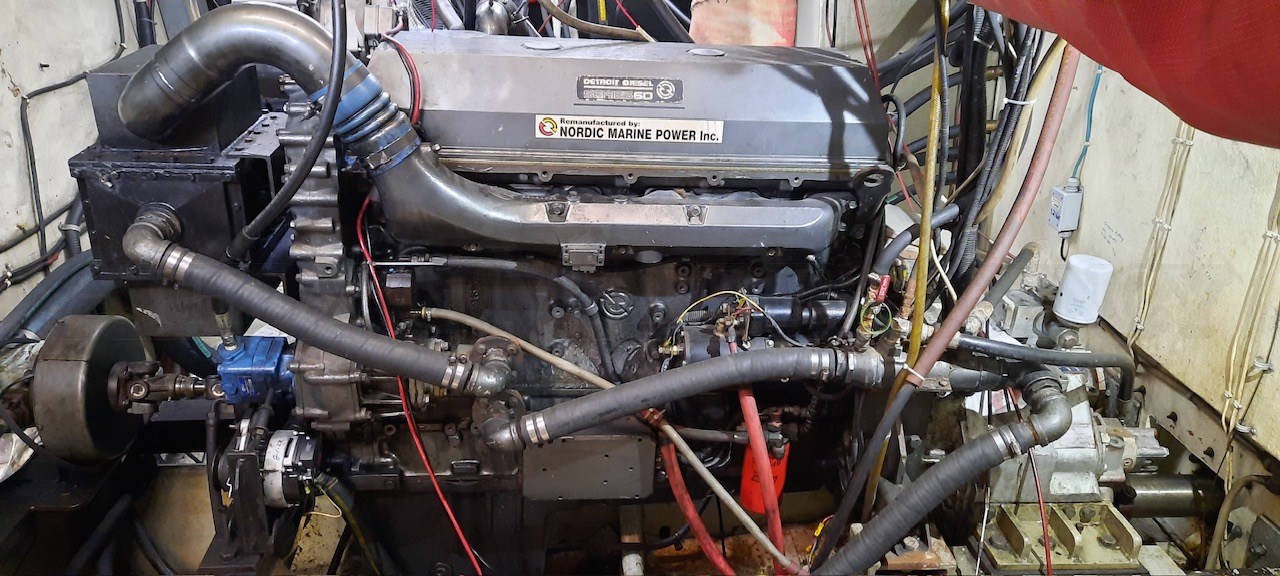 Main Engine: 360HP, Detroit 60 Series Diesel Transmission: ZF ZFW 3501 Gear Ratio: 5.995:1 Shaft Size: 4" stainless steel Steering Type: Hydraulic |
